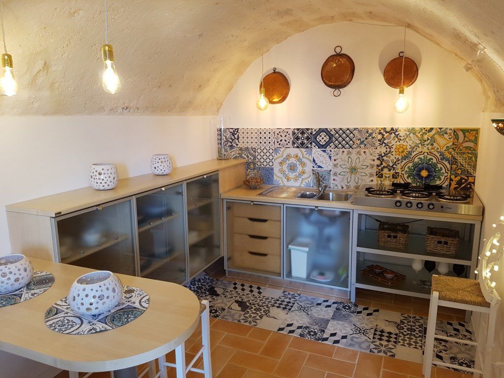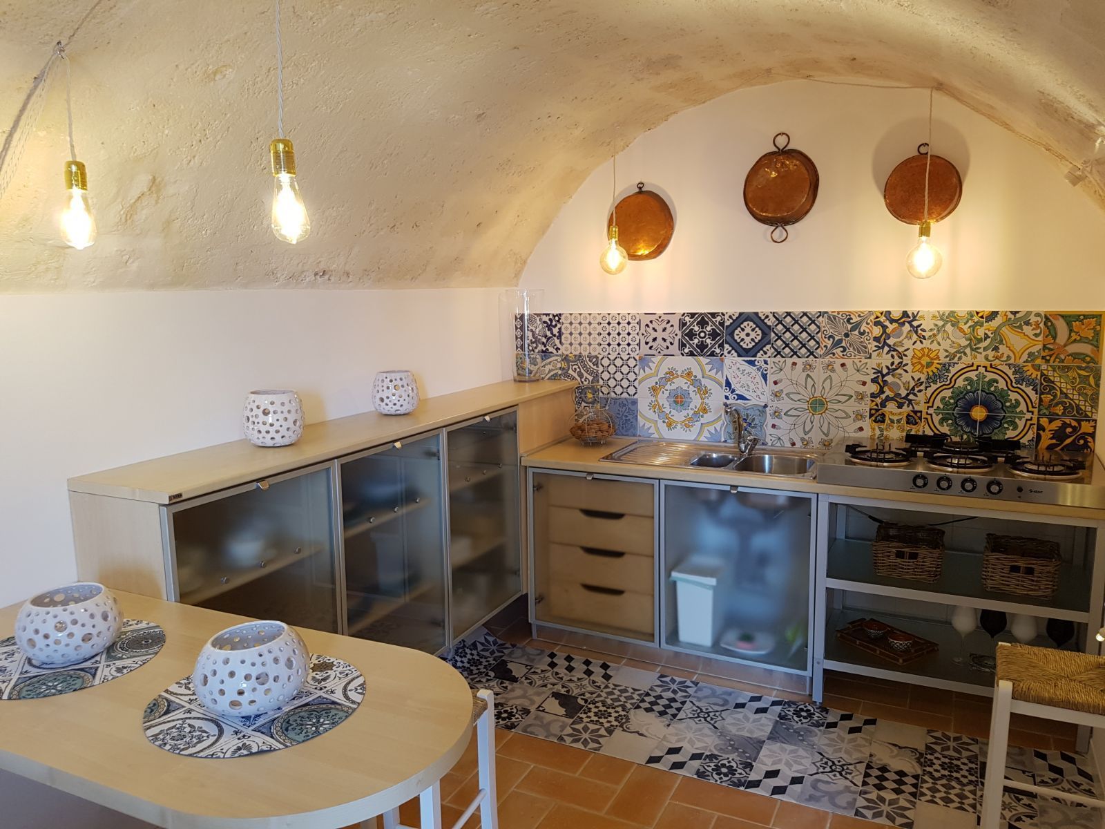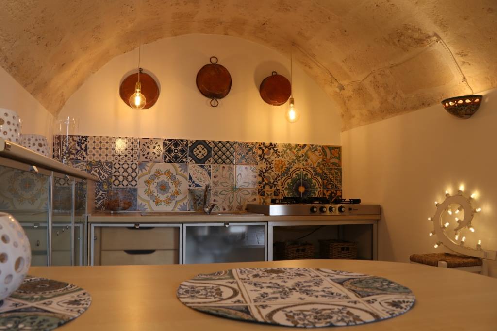 La cucina è perfettamente attrezzata, e consente di godere, in autonomia, del soggiorno nella magica Città dei Sassi. Comoda, completa di tutto, incluso Nespresso e tostapane.